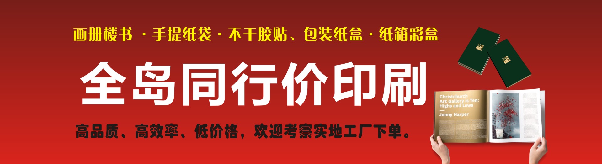 海南鑫太陽印刷業有限公司成立于2002年,主要從事生產海報畫冊、傳單簡介、精品包裝、掛歷臺歷、不干膠貼、手提紙袋、瓦楞紙包裝箱和彩箱紙盒等,公司有日本、德國等對開及四開高速彩色印刷機、自動膠裝機、自動鎖線機、自動復膜機等先進的自動化設備,業務涉及商業、地產、水產、食品、農林、藥品、化工、航空等行業的彩印包裝及宣傳印刷品。我公司另外還設有紙箱包裝廠,可以更好地為客戶配套生產各種檔次級別的瓦楞紙箱彩盒、普通紙箱紙盒、精裝禮盒等大型產品包裝,產品范圍包括花炮箱、飲料箱、食品箱、魚箱、花箱等。   公司印刷車間實行24小時高速生產,最快可做到當日下單當日取貨,可以快捷及時地將產品送到用戶手中。省內客戶可做到早上下單,晚上物流發貨,為客戶真正做到物美價廉高效快速的產品,直接面對廣告印刷同行和客戶承接同行加工服務,以最高效率最佳品質為客戶服務,打造海南有影響力的商業快印平臺。   歡迎新老客戶、廣告印刷業同行前來現場參觀指導,現場看樣。同行包工包料會員價有更多優惠,請來電咨詢前臺報價。 前臺 前臺1 休息室 車間... 了解詳情